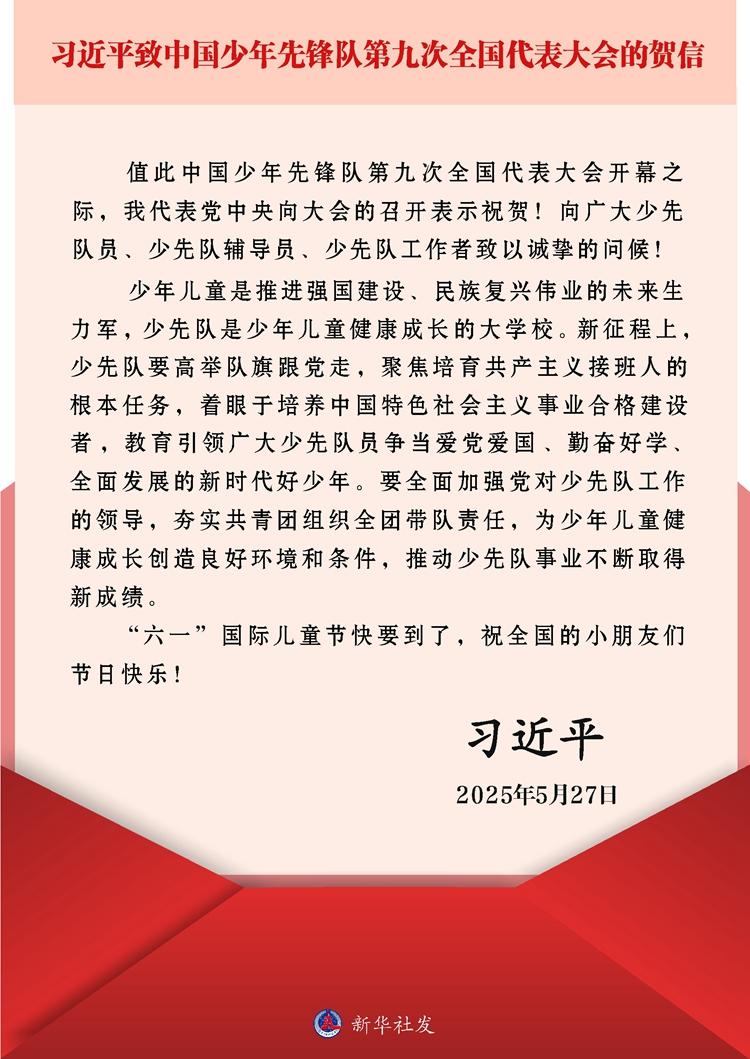 習(xí)近平致信祝賀中國少年先鋒隊(duì)第九次全國代表大會召開強(qiáng)調(diào)