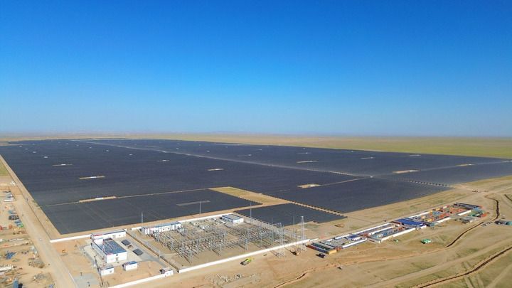 這是2024年6月20日在烏茲別克斯坦卡什卡達里亞州拍攝的1吉瓦光伏項目光伏板。新華社發(中國能建海投公司供圖)