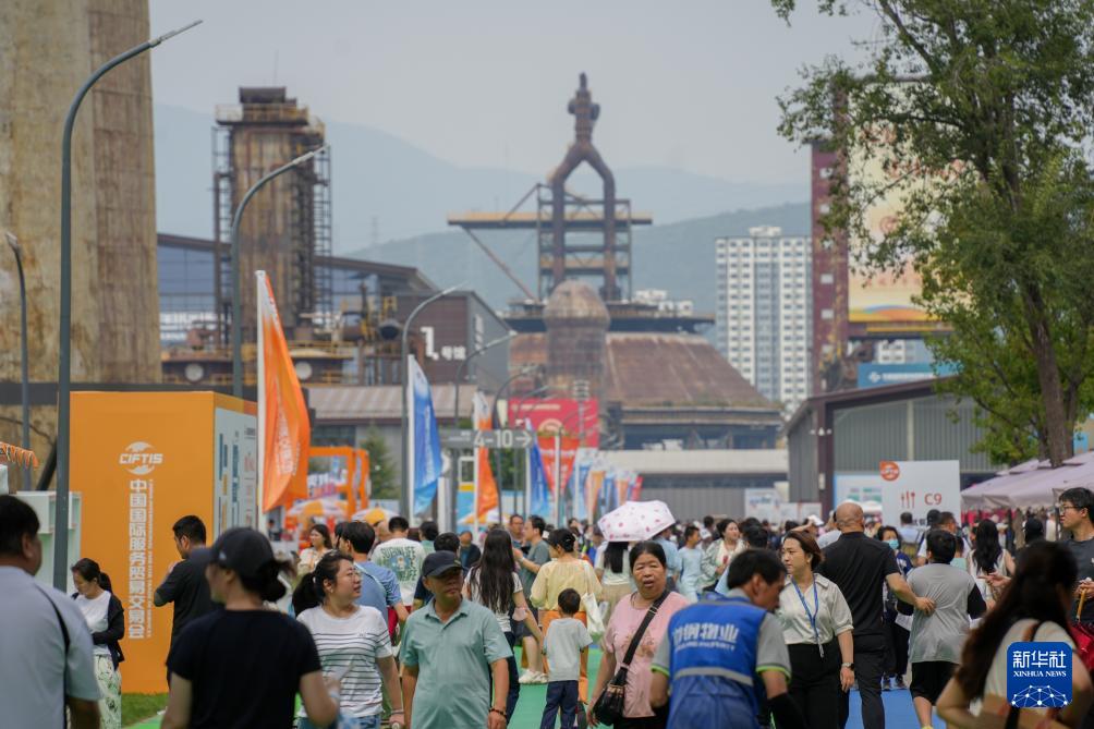 9月13日,人們在北京首鋼園2025年服貿(mào)會文旅服務(wù)展區(qū)參觀。