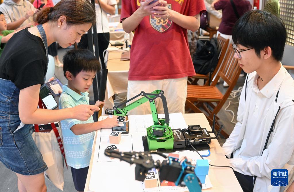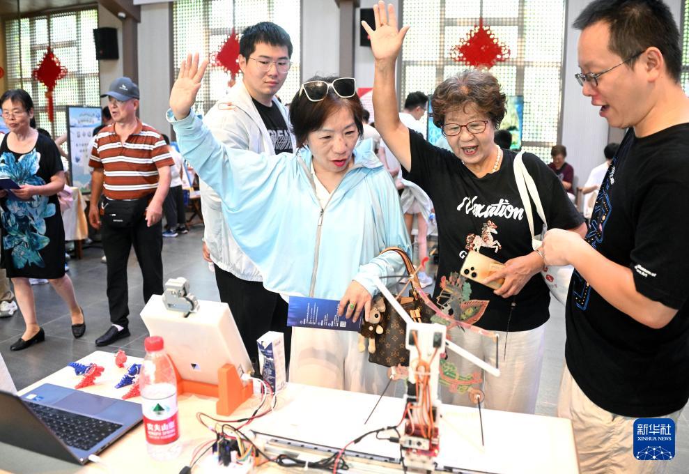 9月13日,社區(qū)居民現(xiàn)場體驗“AI機械臂”項目。