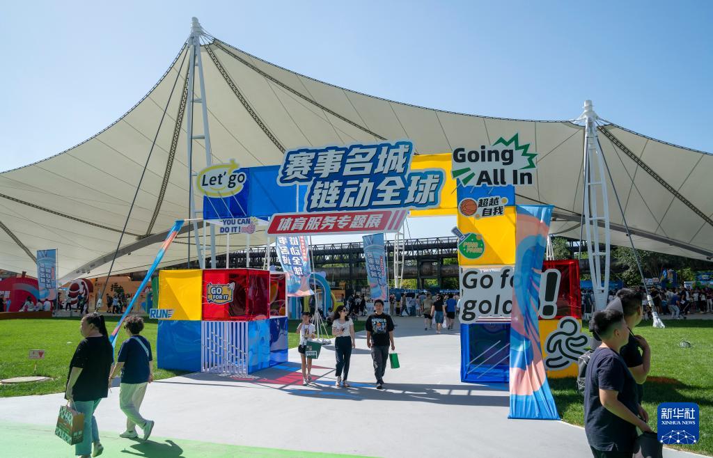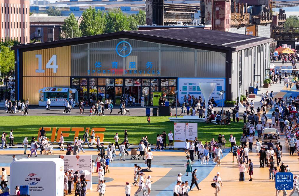 9月14日,人們在北京首鋼園2025年服貿會展館間行走。