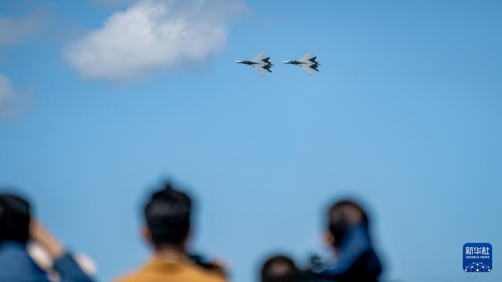 9月16日,人們在2025年空軍航空開放活動和長春航空展預演上拍攝飛行表演。