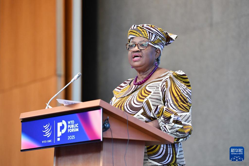 9月17日,在瑞士日內(nèi)瓦世貿(mào)組織總部,世貿(mào)組織總干事伊維拉在《2025世界貿(mào)易報(bào)告》發(fā)布會(huì)上講話。