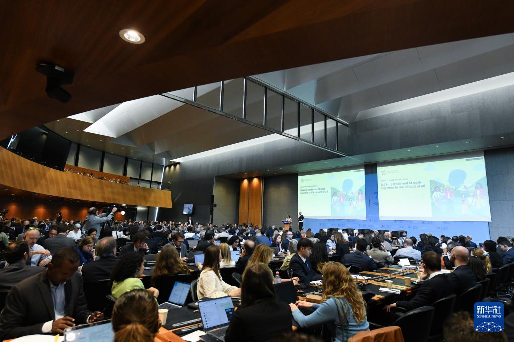 9月17日,在瑞士日內(nèi)瓦世貿(mào)組織總部,參會(huì)者聆聽《2025世界貿(mào)易報(bào)告》發(fā)布會(huì)報(bào)告。
