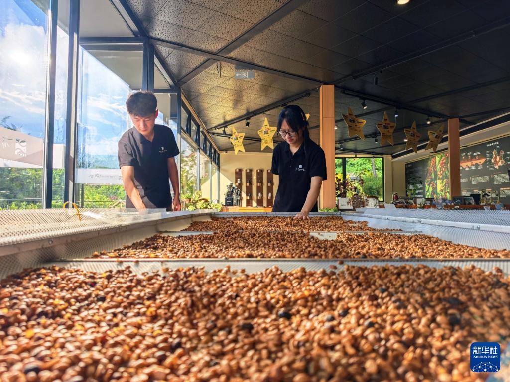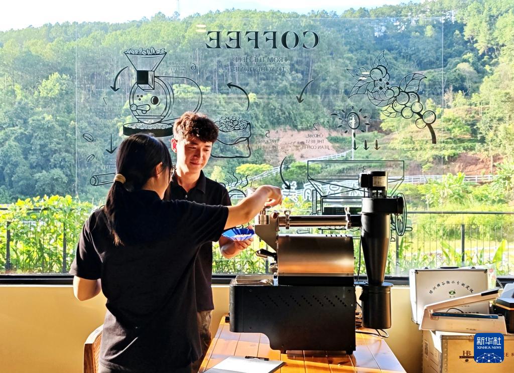 9月20日,普洱市思茅區(qū)南屏鎮(zhèn)南島河村白沙坡小組的“美麗星村·有風(fēng)咖谷”工作人員在烘焙咖啡豆。
