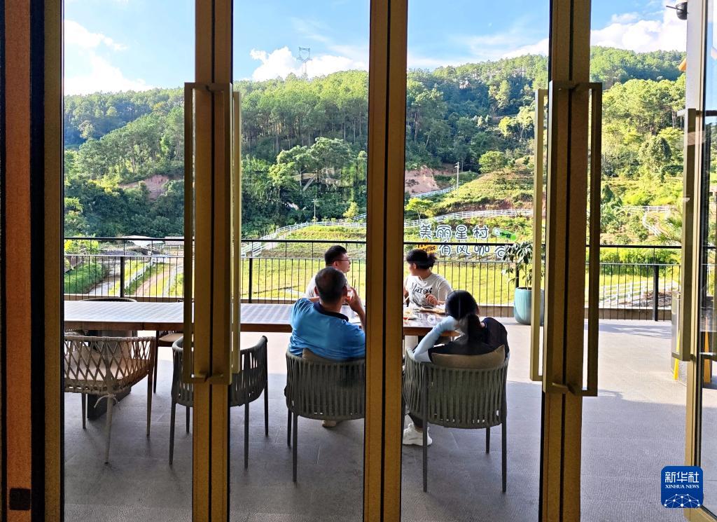 9月20日,游客在普洱市思茅區(qū)南屏鎮(zhèn)南島河村白沙坡小組的“美麗星村·有風(fēng)咖谷”品嘗咖啡。