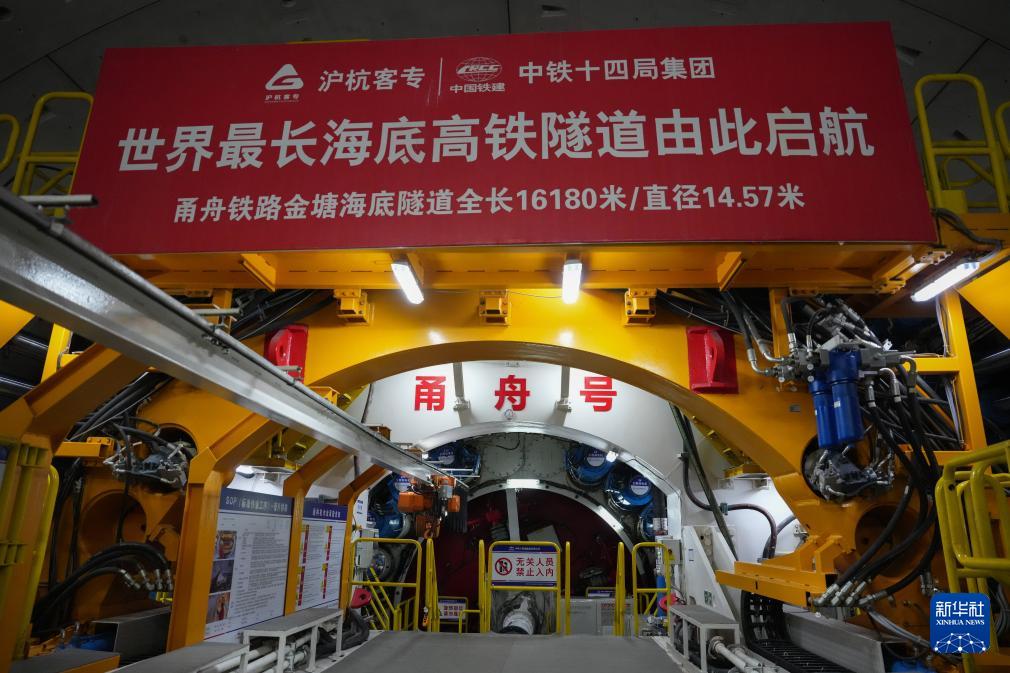 甬舟鐵路金塘海底隧道西起浙江寧波市北侖區,東至舟山市金塘鎮,全長16.18公里,是世界最長海底高鐵隧道。
