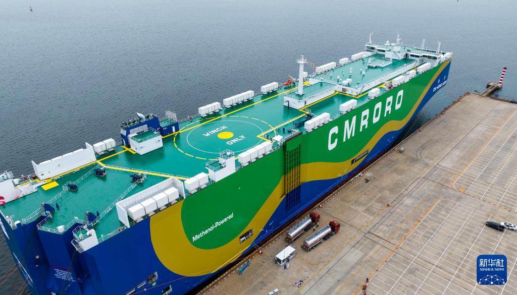 9月22日,甲醇雙燃料動力汽車滾裝船“港榮”輪靠泊天津港環球滾裝碼頭,并進行了300噸國產綠色甲醇岸基加注作業,這標志著天津港已具備規模化供應綠色甲醇能力。