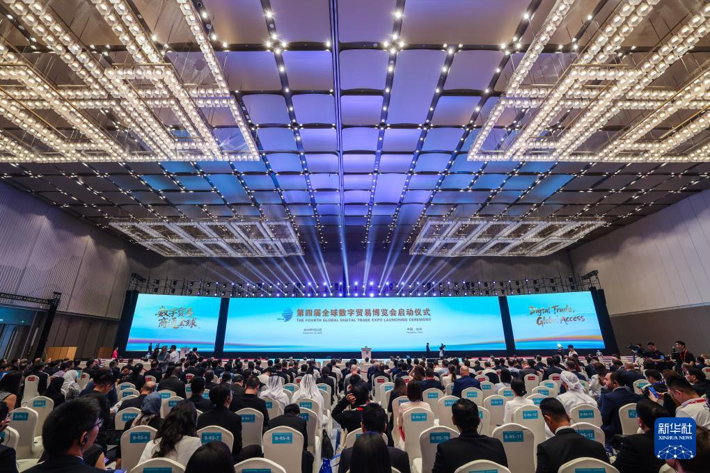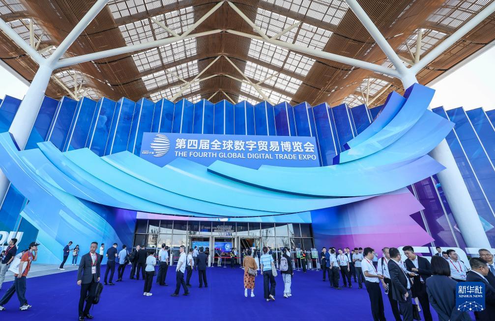 這是9月25日拍攝的第四屆全球數(shù)字貿(mào)易博覽會(huì)啟動(dòng)儀式現(xiàn)場(chǎng)。