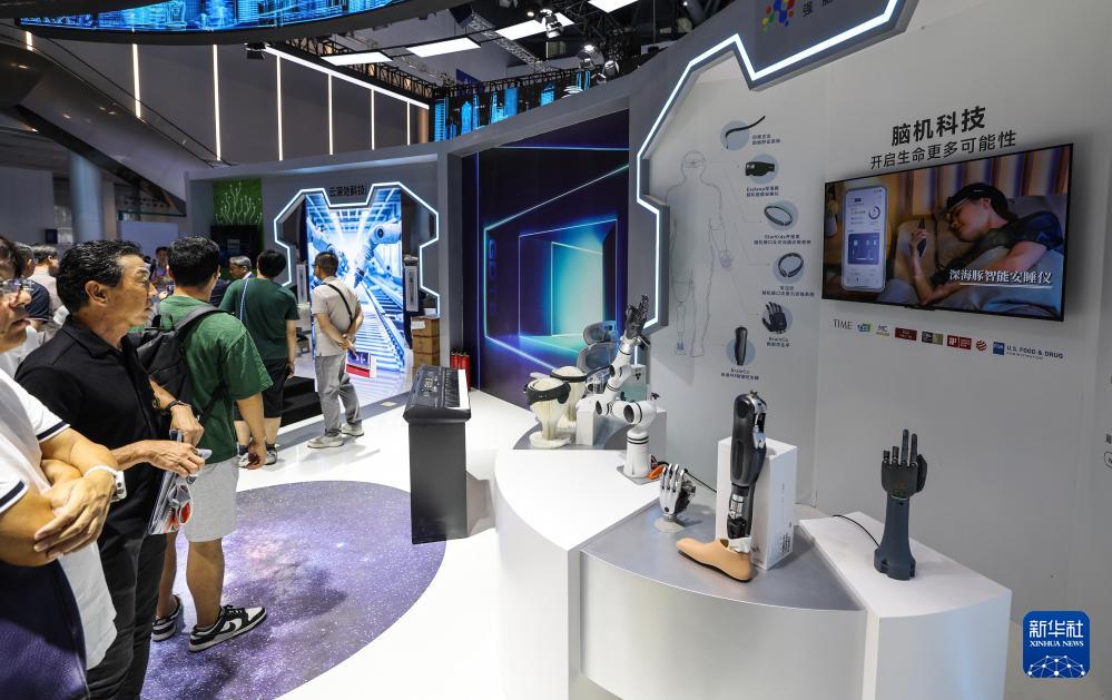 9月25日,在第四屆全球數(shù)字貿(mào)易博覽會(huì)的數(shù)智未來(lái)主題展區(qū)的杭州六小龍專區(qū),觀眾在觀看強(qiáng)腦科技的仿生靈巧手。