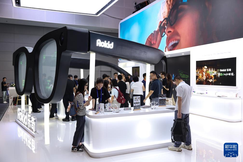 9月25日,觀眾在第四屆全球數(shù)字貿(mào)易博覽會(huì)人工智能展區(qū)參觀智能眼鏡設(shè)備。