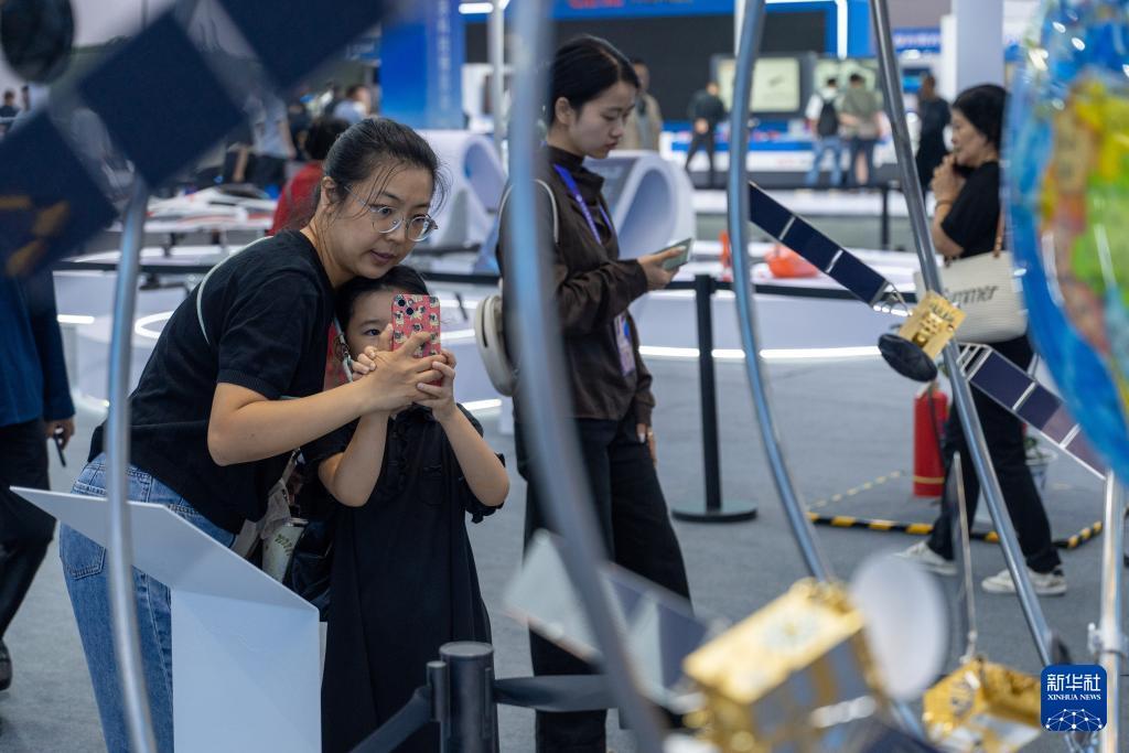 9月27日,在第十三屆中國(綿陽)科博會上,小觀眾在拍攝北斗衛星導航系統模型。
