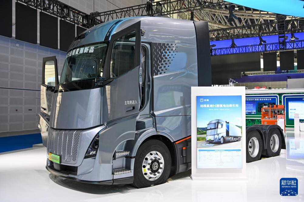這是在2025年山西(太原)能源產(chǎn)業(yè)博覽會(huì)上展示的一款醇?xì)潆妱?dòng)牽引車(9月27日攝)。