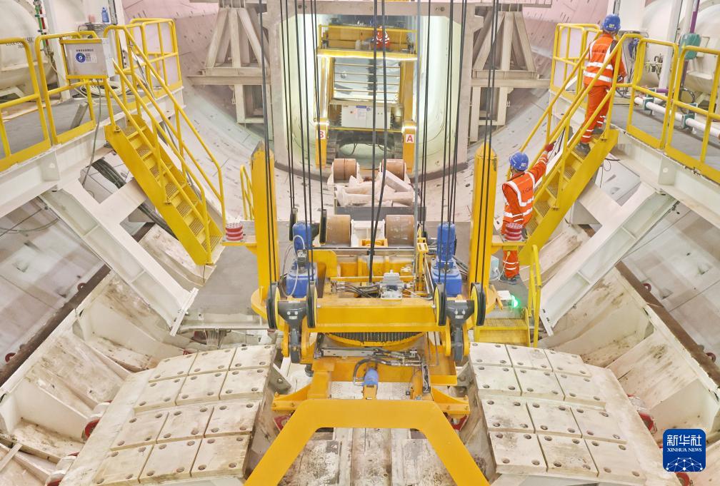 9月28日,施工人員在海太長江隧道工程施工現場拼裝管片。