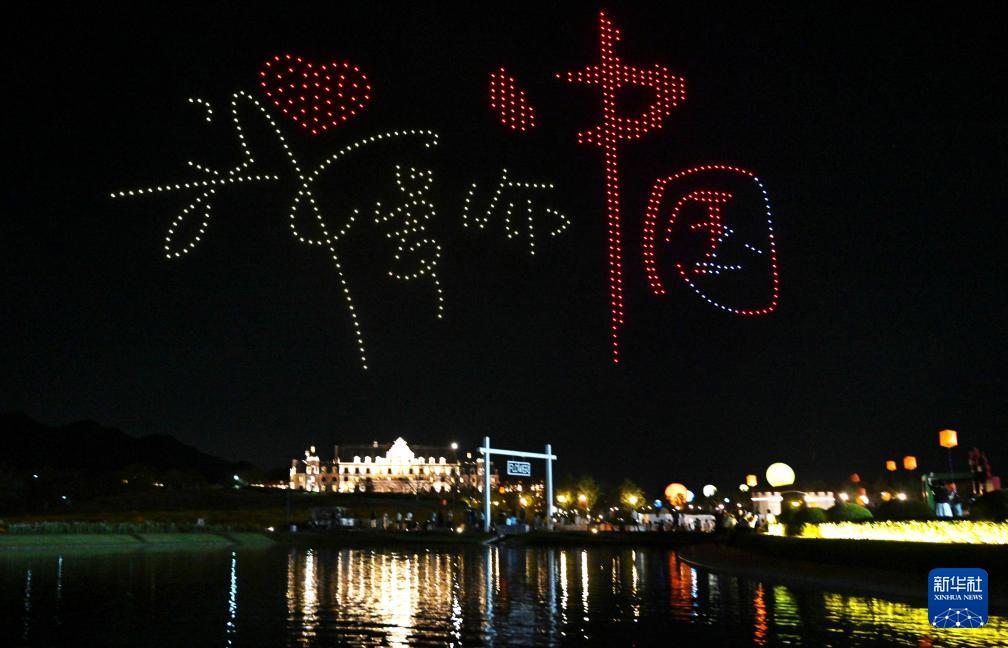 10月4日晚,在浙江省金華市武義縣花田美地景區,精彩的無人機表演為游客呈現了一場視覺盛宴。