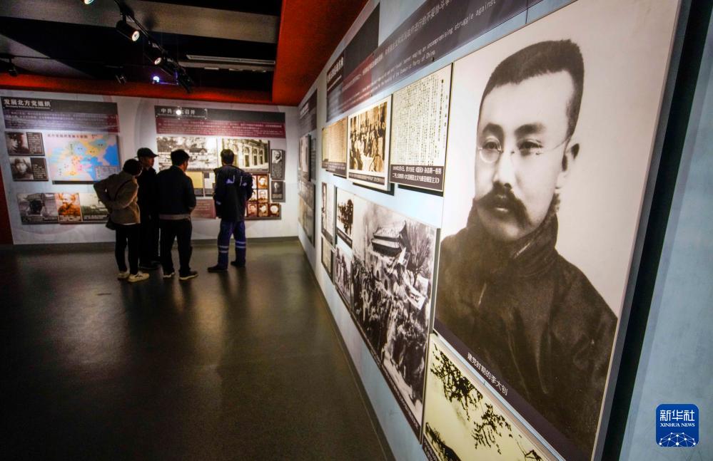 10月8日,游客在河北省唐山市樂亭縣李大釗紀念館參觀。
