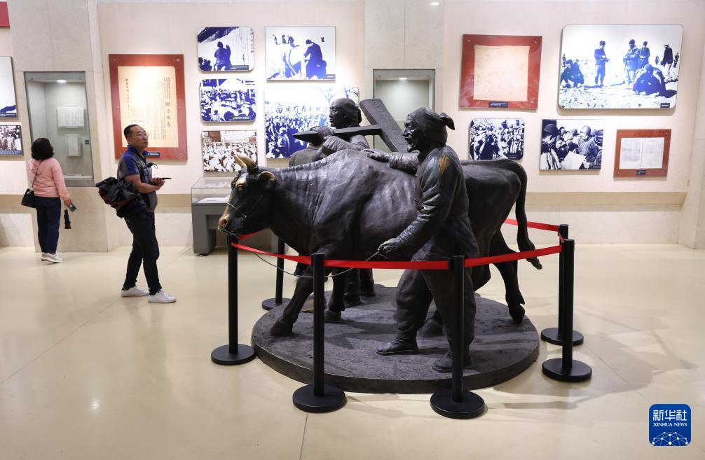 10月8日,游客在河北省平山縣西柏坡紀念館參觀。