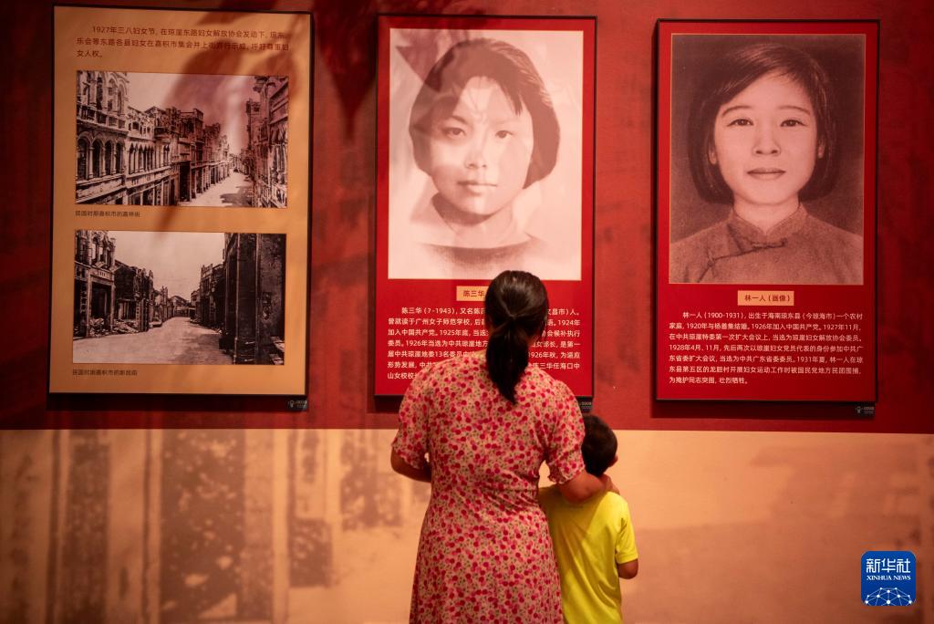 10月2日,家長帶著孩子在海南省瓊海市紅色娘子軍紀念園參觀。