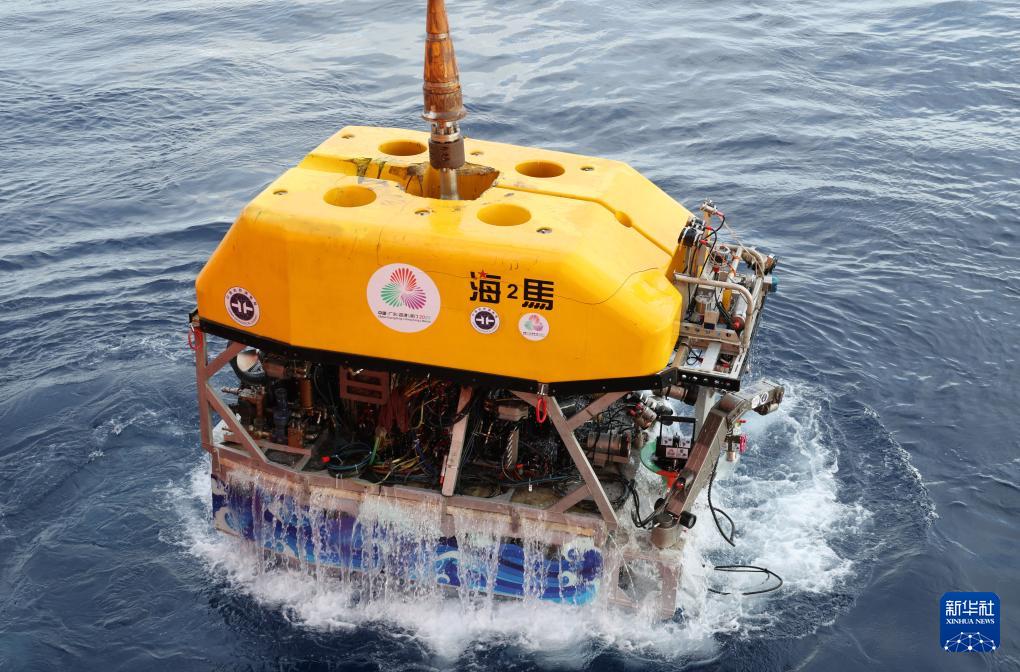 采集“源火”后,“海馬”號深海遙控潛水器從海底返回,浮出水面(9月18日攝)。