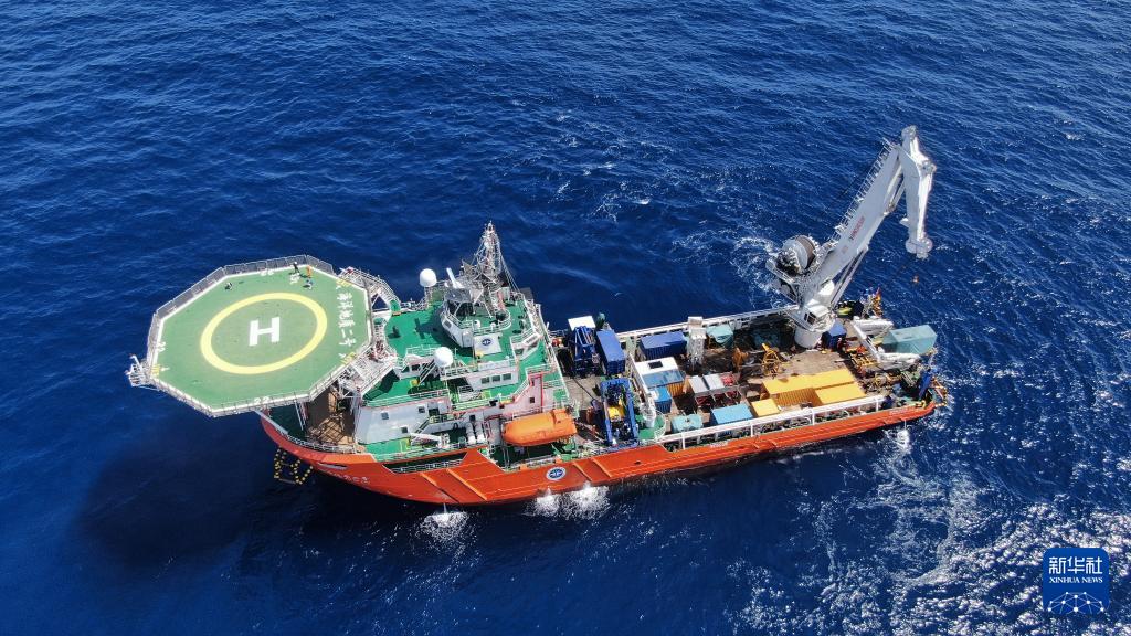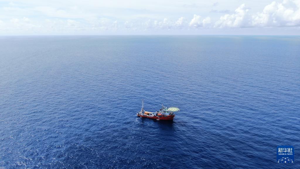 “海洋地質二號”科考船搭載“海馬”號深海遙控潛水器在南海北部進行“源火”采集(9月18日攝)。