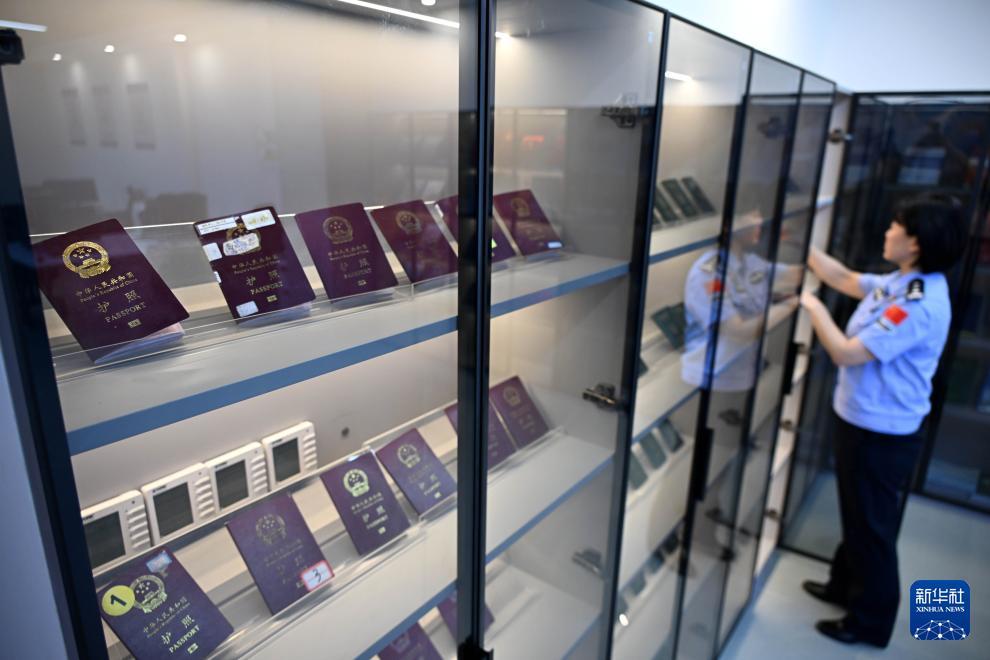 這是10月14日拍攝的青島機場邊檢站證研室。這里收集存放了大量護照樣本供隨時查閱對比。