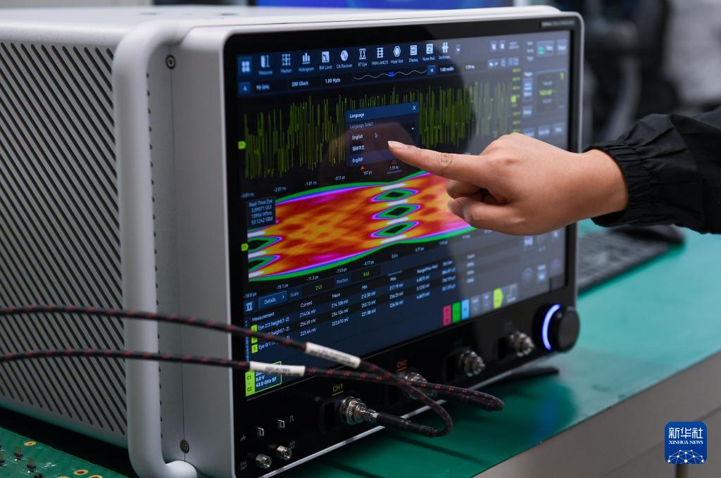 10月13日,在深圳市萬里眼技術(shù)有限公司,實(shí)驗(yàn)室人員在測(cè)試DDR5接口信號(hào)。