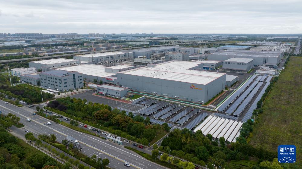 位于中韓(鹽城)產業園內的SK新能源一期動力電池生產基地(10月16日攝,無人機照片)。
