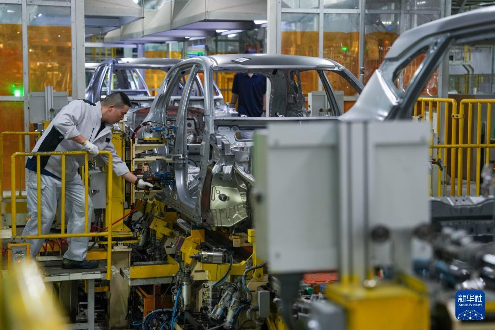 工人在佛吉亞(鹽城)汽車部件系統有限公司汽車配件生產車間內工作(9月18日攝)。