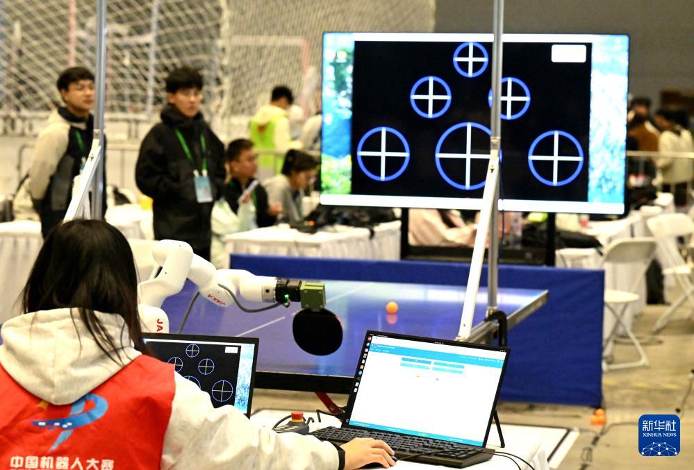 10月17日,乒乓球機器人在河北省石家莊國際會展中心進行比賽。