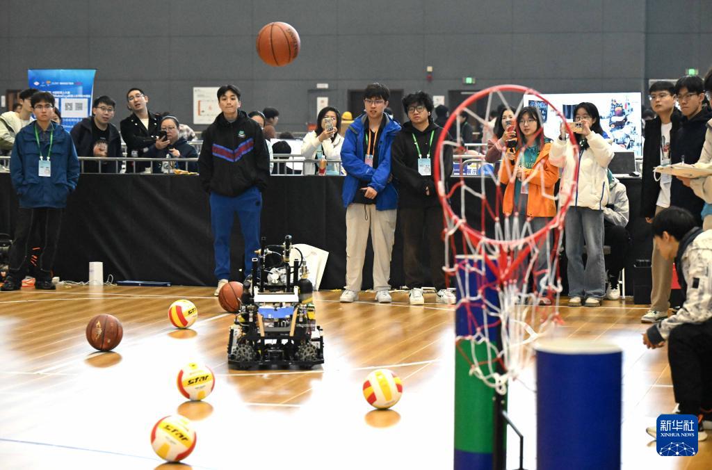 10月17日,籃球機器人在河北省石家莊國際會展中心進行比賽。