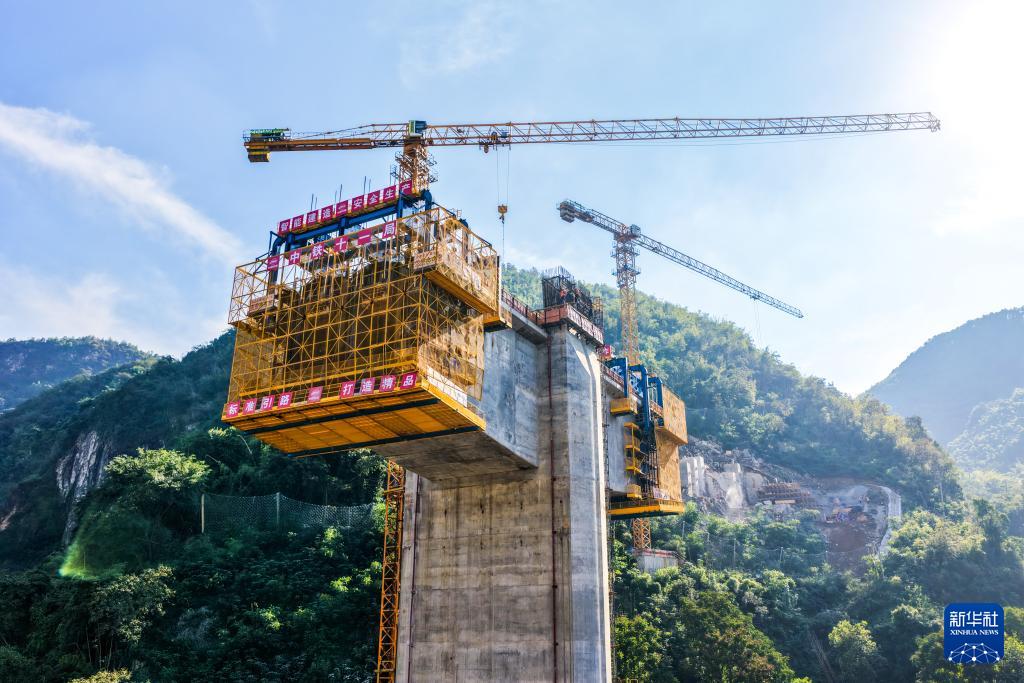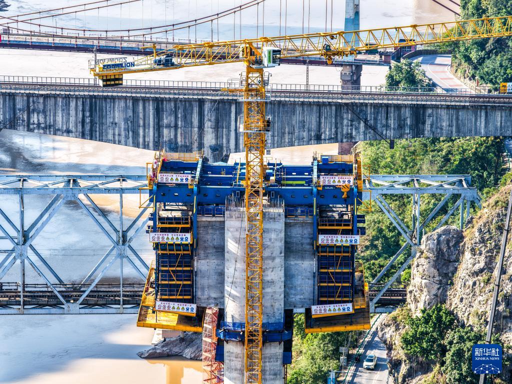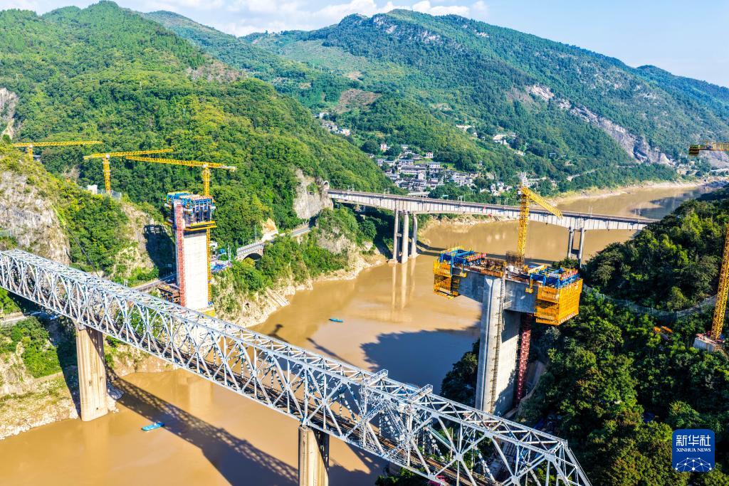 這是10月28日拍攝的西渝高鐵嘉陵江特大橋建設現場(無人機照片)。
