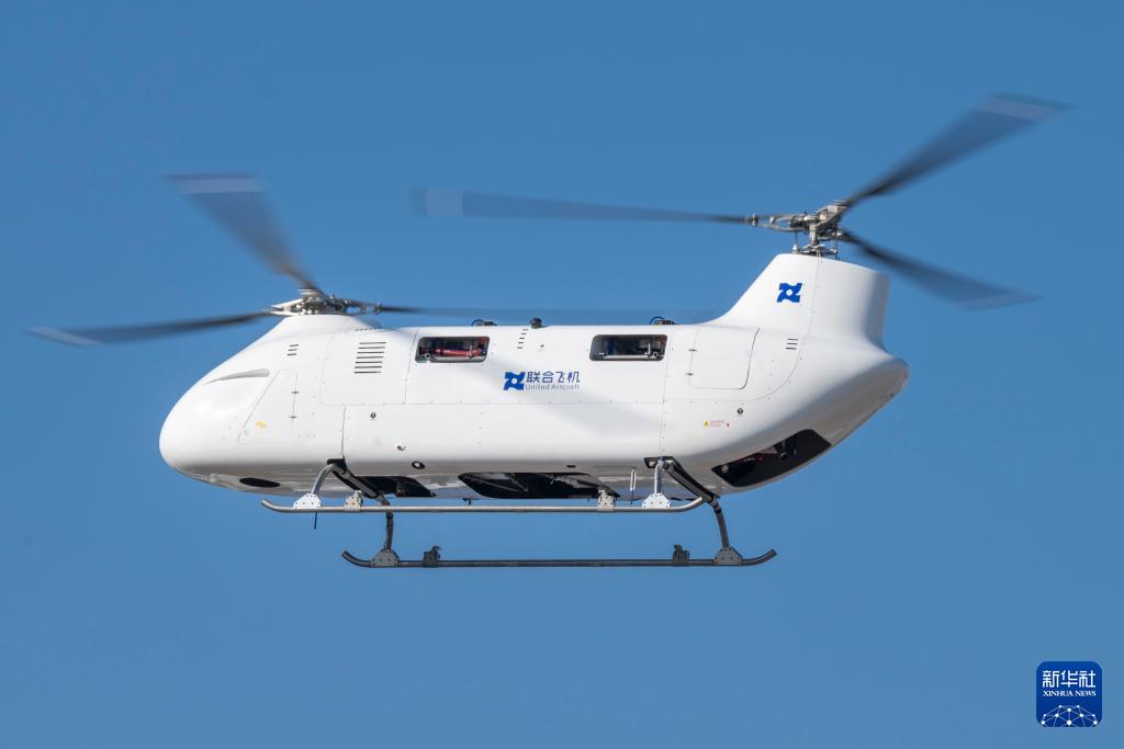 10月30日,在哈爾濱市平房區的哈爾濱聯合飛機科技有限公司,T1400無人直升機在飛行中。