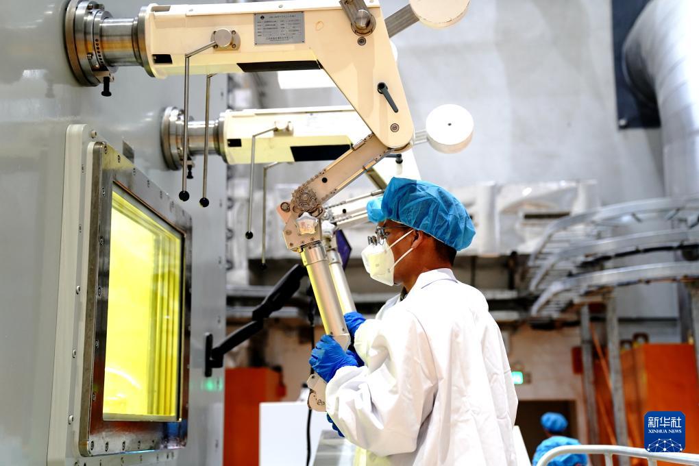10月24日,科研人員在2兆瓦液態(tài)燃料釷基熔鹽實驗堆廠房,用機械手分析燃料鹽樣品。
