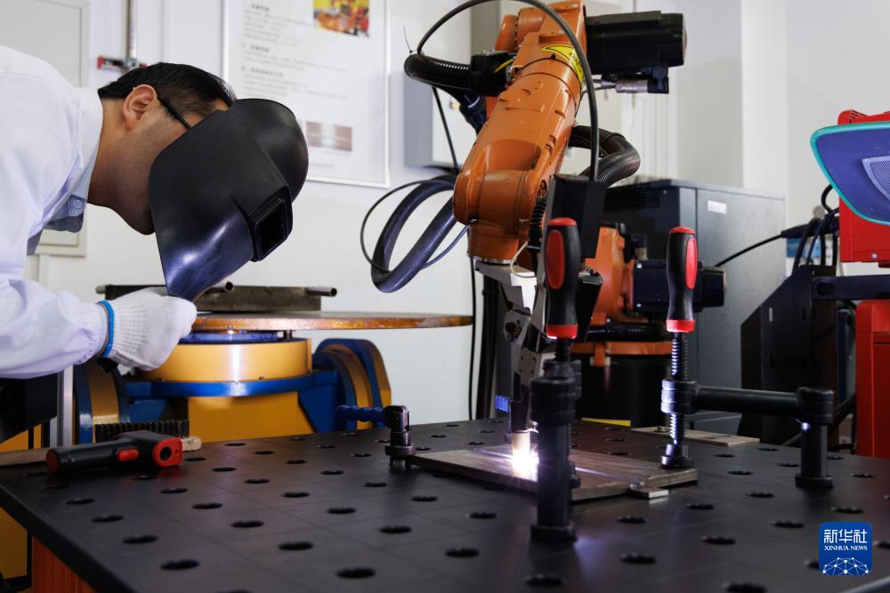 10月23日,在位于中國科學(xué)院上海應(yīng)用物理研究所嘉定園區(qū)的焊接實驗室,科研人員在觀察用于建設(shè)液態(tài)燃料釷基熔鹽實驗堆的合金材料的焊接進展。