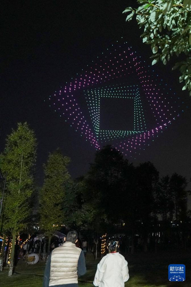 11月1日,在四川省眉山市彭山區(qū),游客在觀看無人機表演。