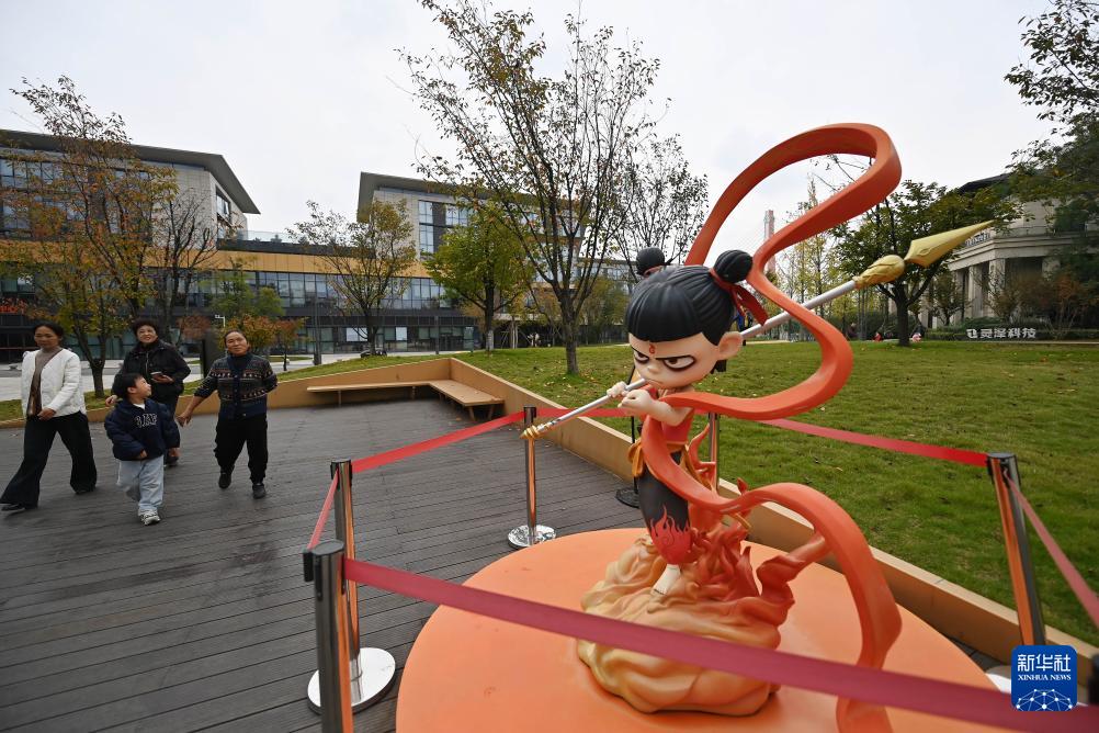 11月2日,人們從成都市天府長島數字文創園的哪吒雕塑旁走過。天府長島數字文創園是成都高新區圍繞數字文創產業策劃打造的專業園區。