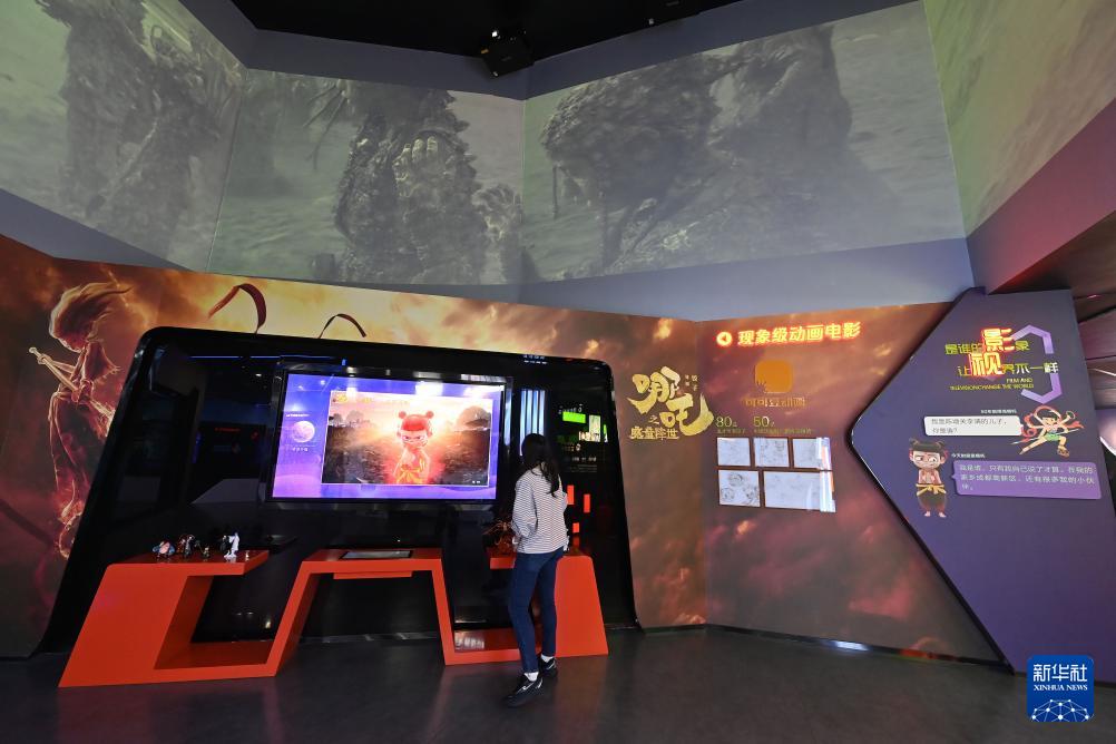 11月2日,墨境天合成都數字圖像科技有限公司總監邢明禮在介紹公司業務。墨境天合成都數字圖像科技有限公司專注于國內頂級視覺特效與動畫制作,參與《哪吒之魔童鬧海》等近百部電影視效制作。