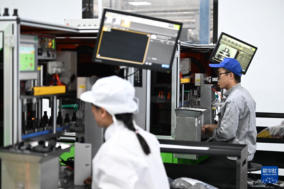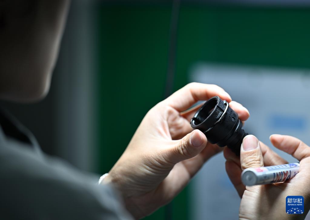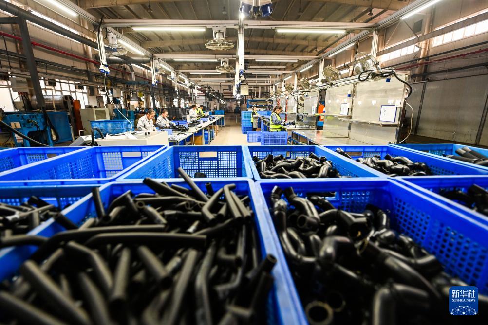 11月5日,工作人員在位于天津市濱海新區中塘鎮的天津鵬翎集團股份有限公司生產車間檢查汽車膠管接頭。