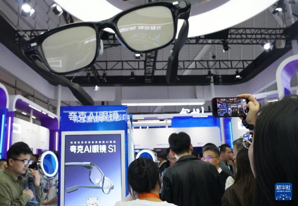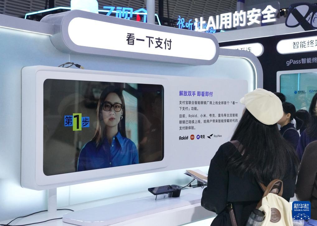 11月6日,觀眾在2025年世界互聯(lián)網(wǎng)大會“互聯(lián)網(wǎng)之光”博覽會現(xiàn)場的AI眼鏡展臺試戴AI眼鏡。