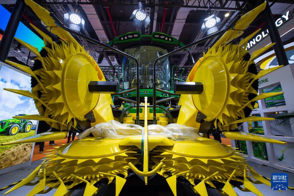 11月6日,在第八屆進博會技術裝備展區拍攝的自走式青貯收獲機。