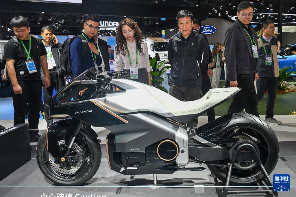 11月6日,在第八屆進博會汽車及智慧出行展區本田(Honda)展臺,觀眾在圍觀本田全新電動概念摩托車。