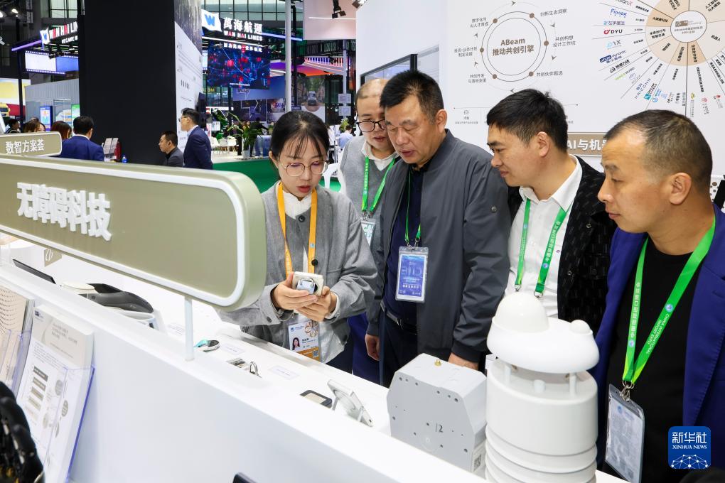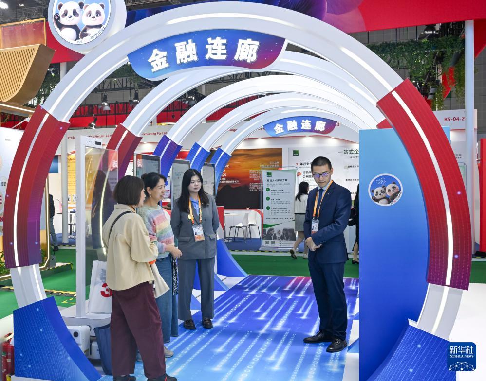 11月9日,人們在第八屆進博會服務貿易展區浦發銀行展臺體驗互動裝置。