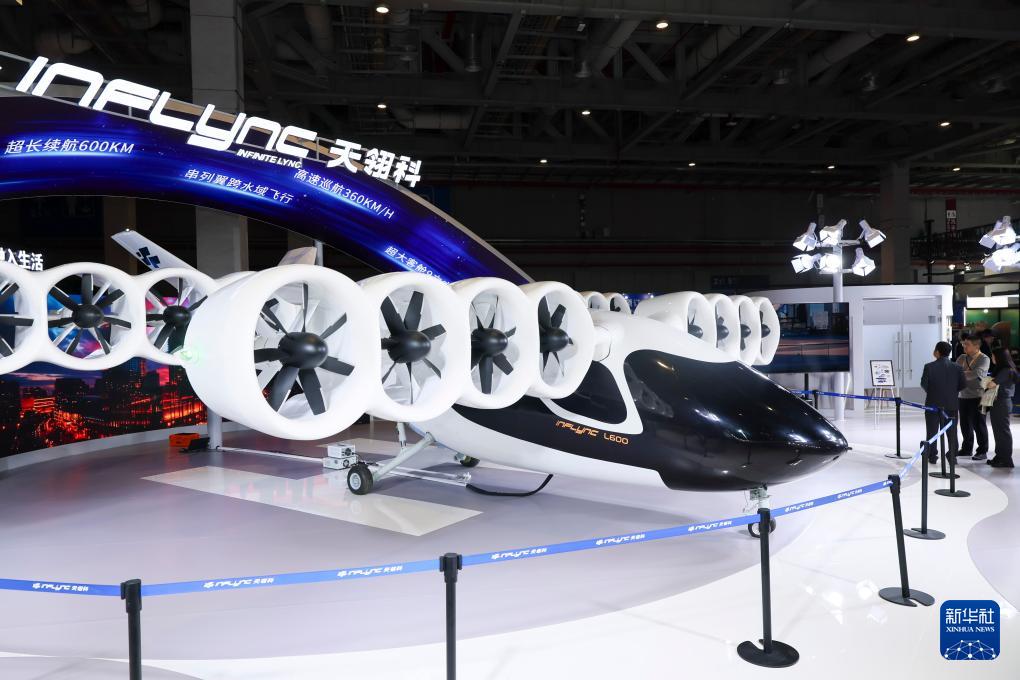 11月5日在第八屆進博會汽車及智慧出行展區拍攝的時的科技E20 eVTOL(電動垂直起降飛行器)。