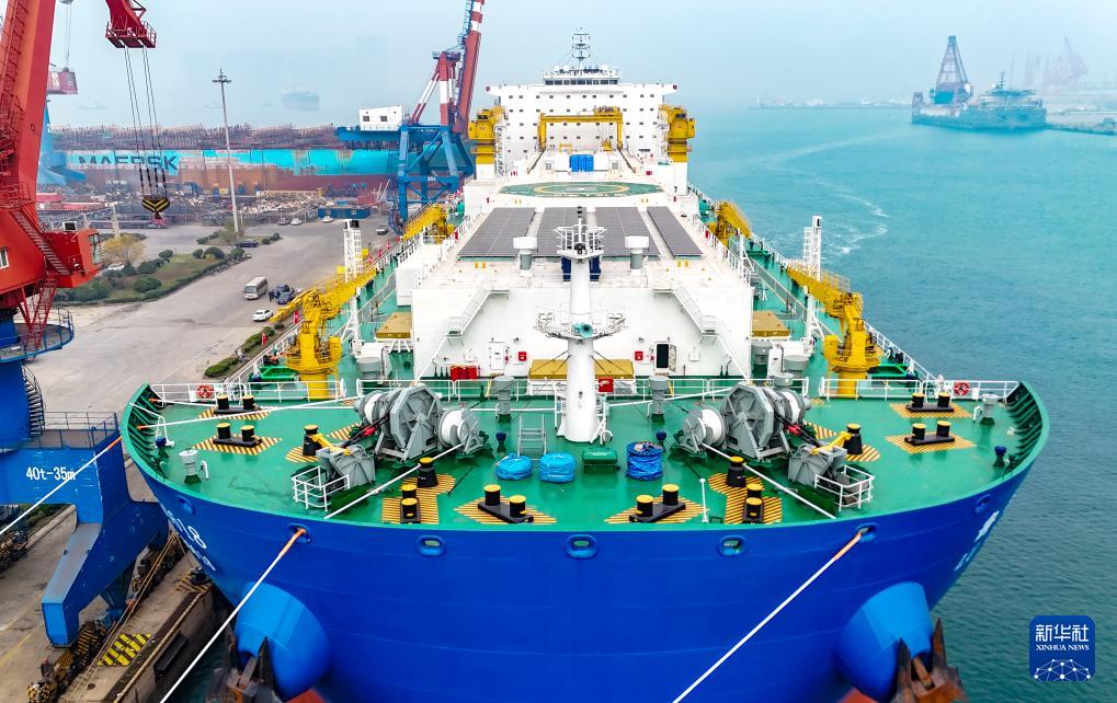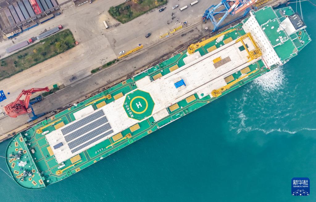 11月15日在中國(guó)船舶集團(tuán)青島北海造船有限公司拍攝的“國(guó)信1號(hào)2-2”船(無人機(jī)照片)。