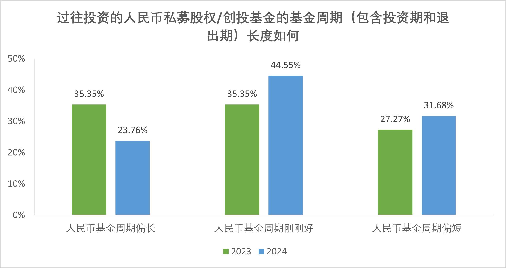 調(diào)研結(jié)果顯示,基金存續(xù)期以“4+3”模式為主,31.7%機(jī)構(gòu)認(rèn)為基金整體周期偏短,23.8%則認(rèn)為偏長(zhǎng),這種分化現(xiàn)象提示管理人在產(chǎn)品設(shè)計(jì)時(shí)需更精準(zhǔn)匹配LP的期限偏好。當(dāng)前基金大多投向硬科技等國(guó)家戰(zhàn)略性新興重點(diǎn)行業(yè),需更長(zhǎng)的培育期以匹配技術(shù)轉(zhuǎn)化節(jié)奏,主流的“4+3”模板已較難適配,LP對(duì)S基金的關(guān)注增加也在一定程度上反映基金現(xiàn)存周期不足所導(dǎo)致的退出難問(wèn)題。