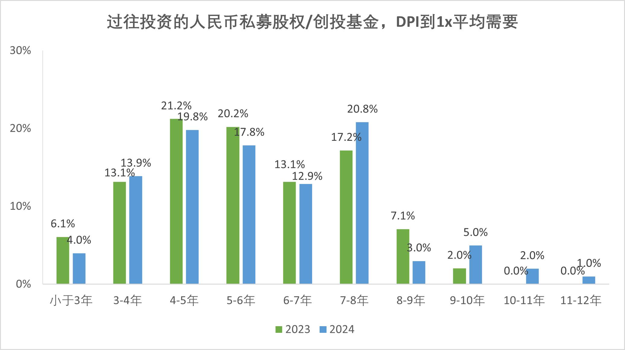 超半數(shù)(53.5%)機(jī)構(gòu)需5-8年實(shí)現(xiàn)DPI到1x;59.4%認(rèn)為回本周期會(huì)延長(zhǎng),機(jī)構(gòu)對(duì)市場(chǎng)環(huán)境預(yù)期較為悲觀(guān)。
