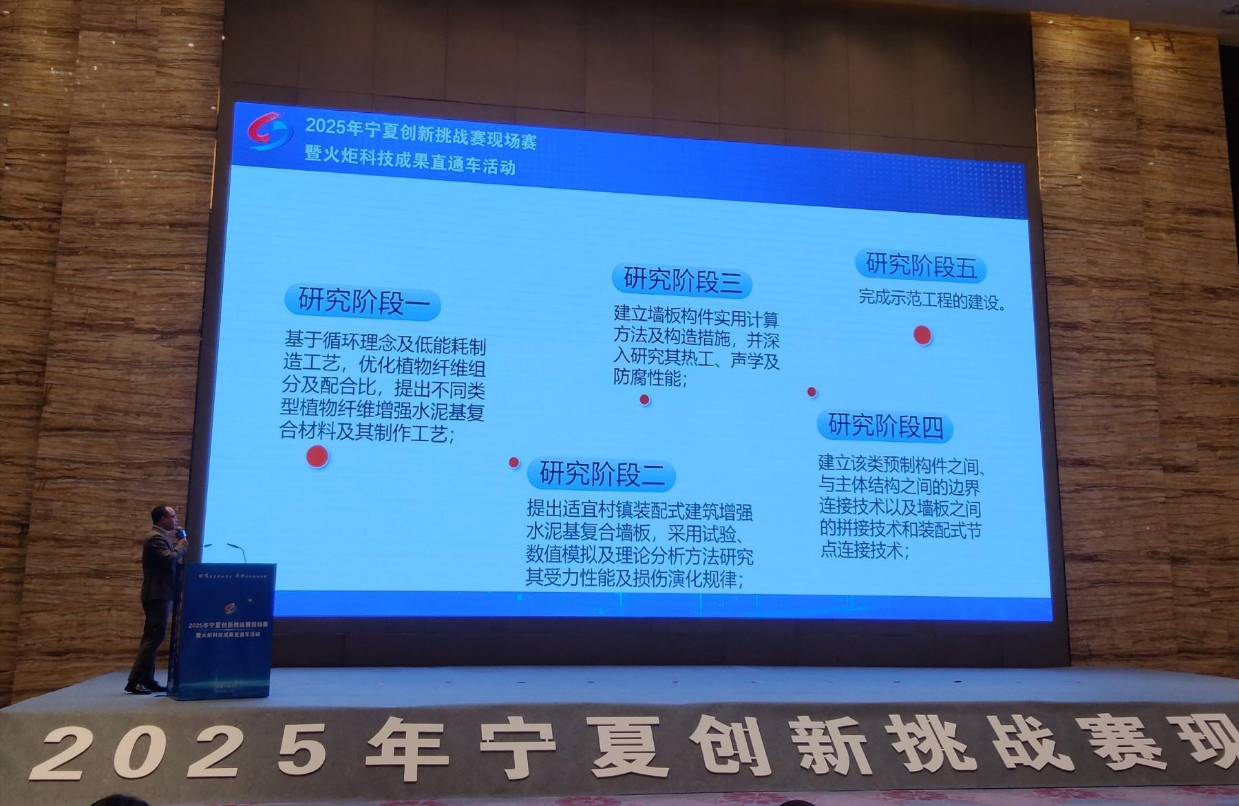 此次,寧夏中盛建材科技有限公司打算尋求一種新型綠色環保施工技術,針對外墻保溫板材產品低碳、環保、節能、無毒、無輻射、零甲醛、保溫隔熱等性能提出新產品的開發研究。在路演環節,寧夏大學土木與水利工程學院碩士生導師馬振福帶來了團隊智慧的結晶《綠色低碳圍護系統——植物纖維水泥基裝配式外墻板關鍵技術研發與應用》。