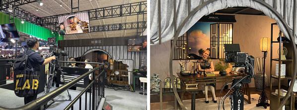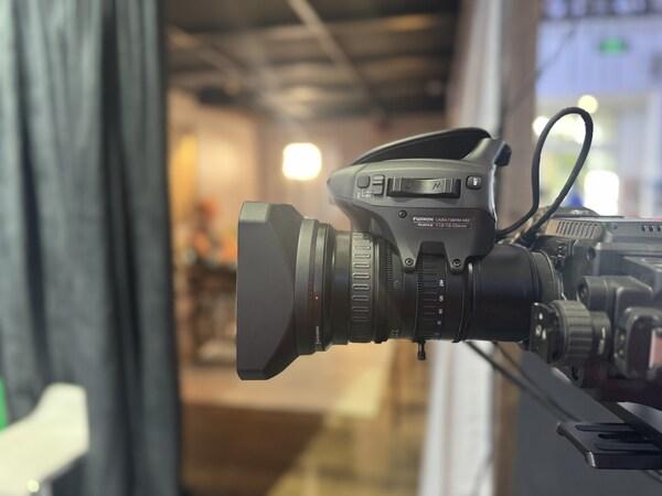 走進(jìn)富士膠片(中國)展臺(tái),一個(gè)融合東方美學(xué)與異域風(fēng)情的“古風(fēng)書房”影棚場(chǎng)景引人注目,暗調(diào)氛圍中層次分明的光影營造出濃郁的電影質(zhì)感,讓人仿佛置身影視創(chuàng)作現(xiàn)場(chǎng)。展臺(tái)內(nèi),四組精心設(shè)計(jì)的機(jī)位以不同高度、角度排布,模擬影視創(chuàng)作中的多視角需求——這里不僅有Duvo系列三款PL卡口電影變焦鏡頭“HZK25-1000”“HZK24-300”“HZK14-100”的實(shí)景演示,更設(shè)置了由4K廣播電視變焦鏡頭“FUJINON LA30x7.8BRM-XB2”(以下簡(jiǎn)稱“LA30”)組成的移動(dòng)拍攝位,讓參觀者能夠近距離操作體驗(yàn),直觀感受從廣角到長(zhǎng)焦、從固定機(jī)位到動(dòng)態(tài)跟拍的豐富創(chuàng)作可能。
