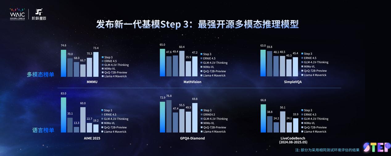 7月25日,在2025世界人工智能大會(huì)(以下簡(jiǎn)稱“WAIC 2025”)開幕前夕,階躍星辰在上海正式發(fā)布了新一代基礎(chǔ)大模型——Step 3。作為階躍的主力基座模型,Step 3兼顧智能與效率,旨在面向推理時(shí)代打造最適合應(yīng)用的模型。Step 3將于7月31日面向全球企業(yè)和開發(fā)者開源,為開源世界貢獻(xiàn)最強(qiáng)多模態(tài)推理模型。