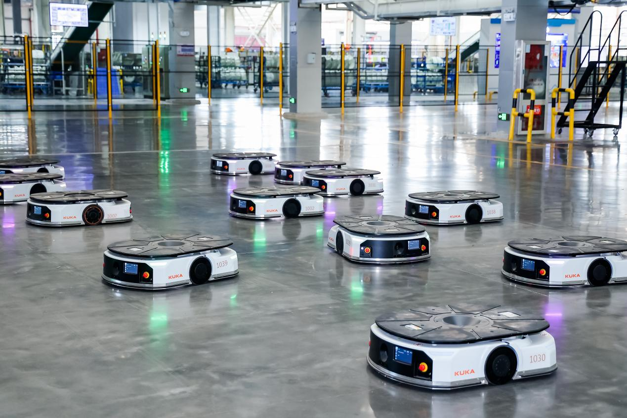 美的洗衣機荊州工廠的智能體不僅局限于人形機器人。在注塑車間,還可以看到81臺AMR(自主移動機器人)在有條不紊地工作。它們主要負責配送,實現注塑物流的全流程無人化場景。每臺AMR都通過AI技術實現智能調度,具備跨域調度、動態路徑感知、靈活換路、行人識別、自主繞障等能力。同時,AMR也會主動向工廠大腦上報任務狀態、設備狀態、二維碼健康度等信息,并實時推送維護信息到員工的美信,讓運維更簡單。